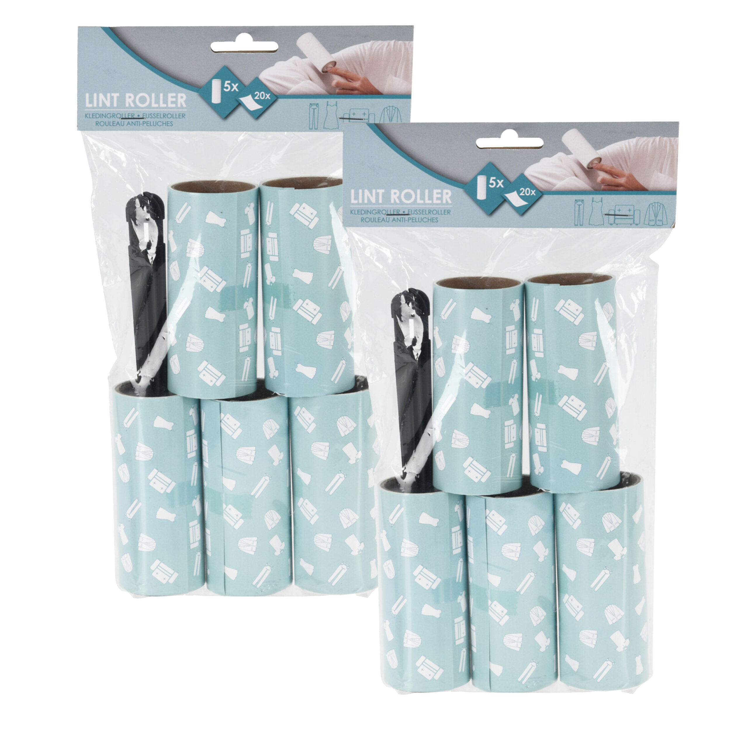 Houd je kleding en meubels moeiteloos schoon met deze kleefroller kledingborstel set. De set bevat een handige houder met 5 rollen, ideaal voor het snel verwijderen van pluizen, stof en huisdierharen van je kleding, bank of andere stoffen oppervlakken. Je ontvangt twee sets.